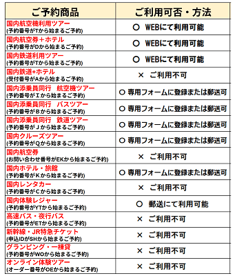 なお、予約番号が「JT」、「YT」、「KK、KF、KC」から始まる番号をお持ちのお客様は、ご予約手続き完了後利用方法をお電話でご確認をください。お問い合わせ先はこちら。